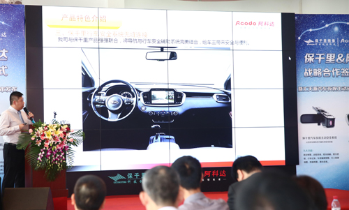 领导精彩的致辞过后,保千里视像科技集团常务副总裁蒋建平作汽车主动安全系统产品路演。蒋总从技术原理、产品功能、解决方案、应用领域、市场前景、营销战略等方面对保千里汽车主动安全系统进行了全面、系统的介绍。